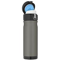 Take your favorite beverage on the go with you with this stylish easy-to-grab 16-ounce, stainless steel backpack bottle in smoke from Thermos. Its TherMax double wall vacuum insulation locks in temperature to preserve flavor and freshness, and the container stays cool to the touch with hot beverages and is condensation-free with cold. It's made from unbreakable, dent-resistant 18/8 stainless steel with a clear coating that reduces fingerprints. The contoured body is comfortable to hold and fits most automobile drink holders, and its drink lid opens with push-button ease and locks closed for leak-proof travel. It measures 2.9 by 2.9 by 9.3 inches (WxDxH). Hand wash only.