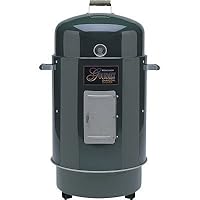 Enjoy slow-cooked barbecue and authentic smokehouse flavor with this top-of-the-line charcoal smoker and grill. Perfect for large gatherings, it comes equipped with two chrome-plated steel cooking grills that can hold up to 50 pounds of food. Cook a ham on one level and a chicken on the other. Both the top and bottom grill levels cook at about the same temperature, so when cooking different types or cuts of meat at the same time, place the meat that cooks the fastest on the top grill for convenient removal. The unit's domed lid supplies a heat indicator for checking the temperature at a glance, while its front-hinged door allows for adding charcoal or water during the smoking process. Other highlights include a porcelain-coated steel water pan, an extra-large aluminized-steel charcoal pan, high-grade wooden handles that stay cool to the touch, a separate base pan for easy cleaning and set-up, and a lightweight design at just 28 pounds. An instruction manual comes included. The charcoal smoker and grill measures 17 by 17 by 35 inches and carries a one-year limited warranty.