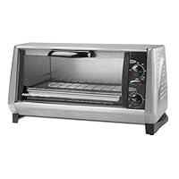 Attractively housed in sleek brushed chrome, this classic countertop toaster oven provides an array of convenient features. The versatile appliance comes in handy at breakfast, lunch, dinner, and snack time and can be used for baking, toasting, browning, or reheating a variety of foods. The unit's 1/4-cubic-foot interior nicely fits individual pizzas, casseroles, or up to four slices of toast at a time, while its control dial makes it simple to adjust the temperature up to 400 degrees F. In addition, its toast-darkness control allows for accommodating individual preferences, from light to dark. Other thoughtful details include an indicator light, a signal bell at the end of the toasting cycle, and a swing-open crumb tray for easy disposal and cleaning. The 1200-watt compact toaster oven measures 9 by 17 by 7-1/3 inches and carries a one-year limited warranty.